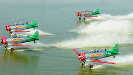 The Flying Lions Aerobatic Team is a well-known South African formation aerobatic team. They fly a four-ship aerobatic display using the Harvard. The team operates five aircraft but only uses four in their displays, leaving the fifth to be used as a backup. The Flying Lions have been in operation since 1999 when Arnie Meneghelli acquired Harvard aircraft that the Air Force was decommissioning. The Flying Lions participate at many major airshows around South Africa.