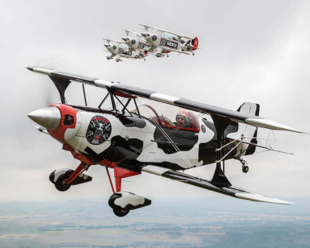 Once you get over the fact that you can’t see very much from the back seat, flying the Pitts Special S2B is like flying any other taildragger. Equipped with a Lycoming AEIO540 engine the start is pretty standard. Having started and being ready to go, you would be well advised to cock the nose of the aircraft to the left or right, enabling you to see what’s in front of you. Sitting in the backseat, your view over the nose is limited. Often what happens is you push your aircraft out to a position on the ramp which is clear of other aircraft and obstacles. While strapping in and getting ready for startup, another aircraft pulls up in front of you without you noticing. You will be surprised at how much of your forward view those 260 Horses block out. I have often started taxiing, cocked the nose and been surprised at what is front of me.