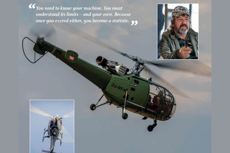 In a world of soaring machines and highspeed display lines, few names carry the weight of Juba. Known across the African continent for his daring rotorcraft displays and even more so for his shadowy past flying in wartorn skies, Juba has lived an aviation life on the edge – and survived to tell the tale. For over 20 years, he’s been part of the South African airshowlandscape – flying low, tight and with unmistakable presence. But behind the smoke trails and crowd-pleasing turns lies a history thatreads like a Cold War novel: Soviet helicopters, African warzones, private military contractors and combat flights